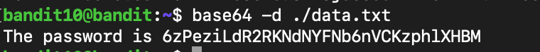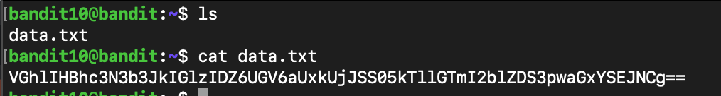 ✅ Level 10 : The password for the next level is stored in the file data.txt, which contains base64 encoded data