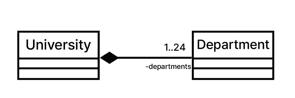| ex) 대학이 없어지면 학부도 사라짐, 영화관 사라지면 매표소도 사라짐 (전체와 부분의 생명주기 동일) - 따라서 부분 인스턴스는 다른 클래스와 공유될 수 없음