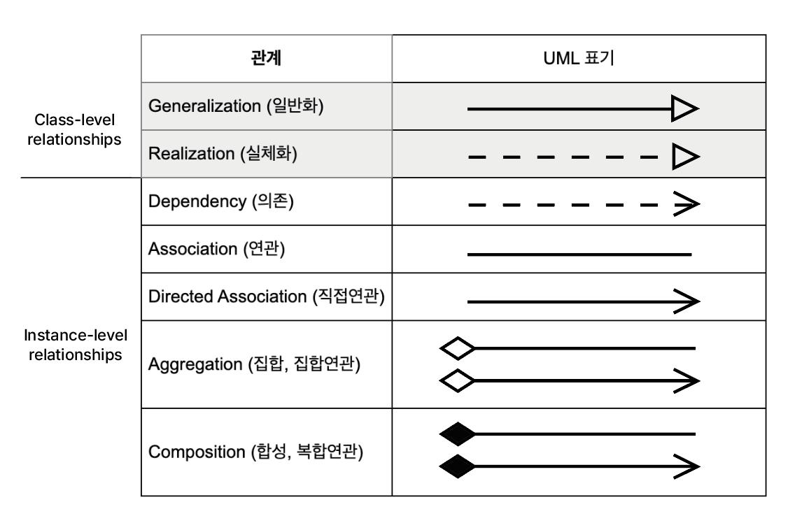 - 클래스로부터 생성된 인스턴스들 간의 관계 표현