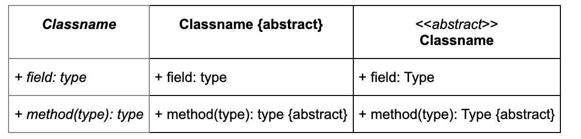 이탤릭체 or 클래스명 {abstract} or <<abstract>> 으로 표시
