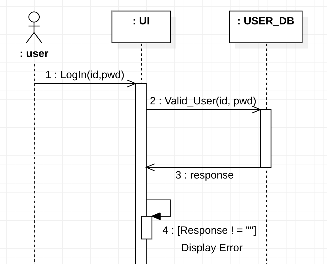 인스턴스 간 상호작용이 아닌 한 인스턴스 내에서 처리할 경우 self message 사용해 본인의 Life Line으로 재귀 표시 가능